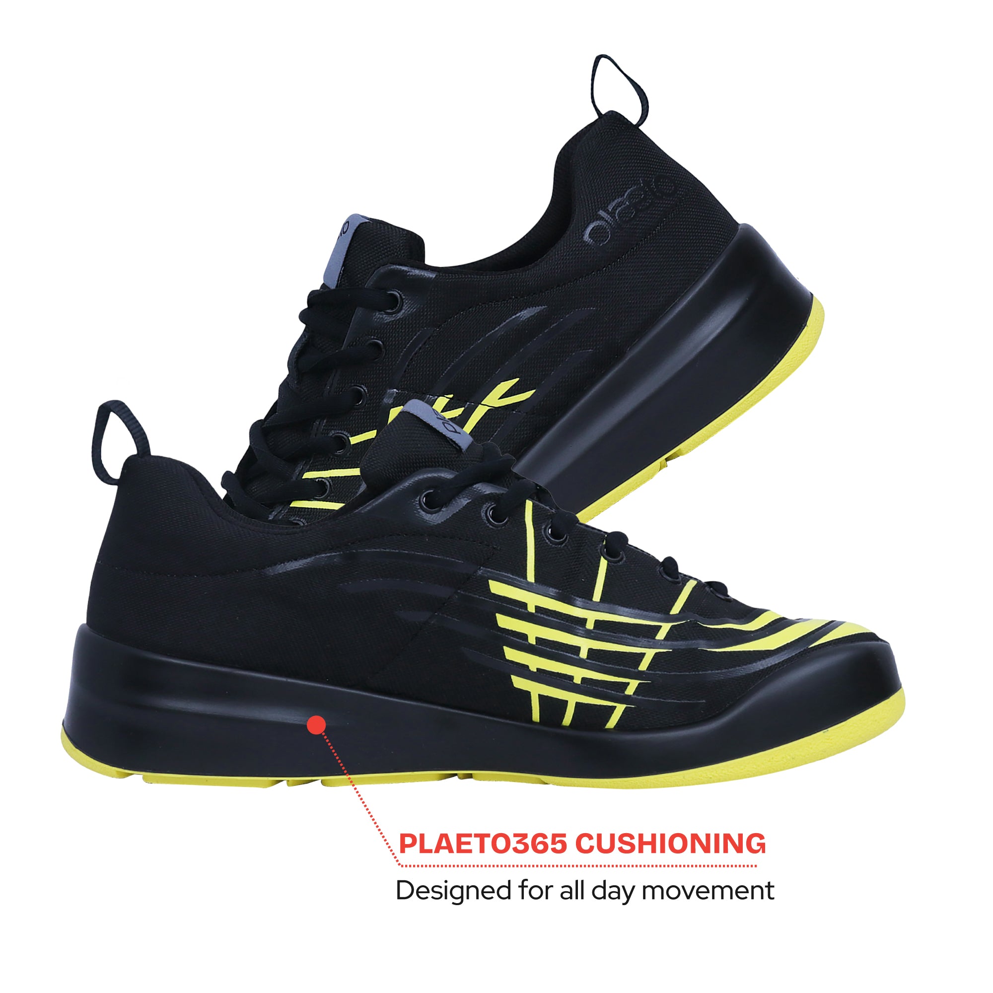 Thanks to Plaeto365, the proprietary midsole cushioning foam, Plaeto shoes ensure Day 1 comfort, even after Day 365. Plaeto shoes are made in India, for Indian feet. The Wide Toe Box gives broader Indian feet the space and support it needs. There's also a High Toe Bumper that protects toes from collisions and mishaps.