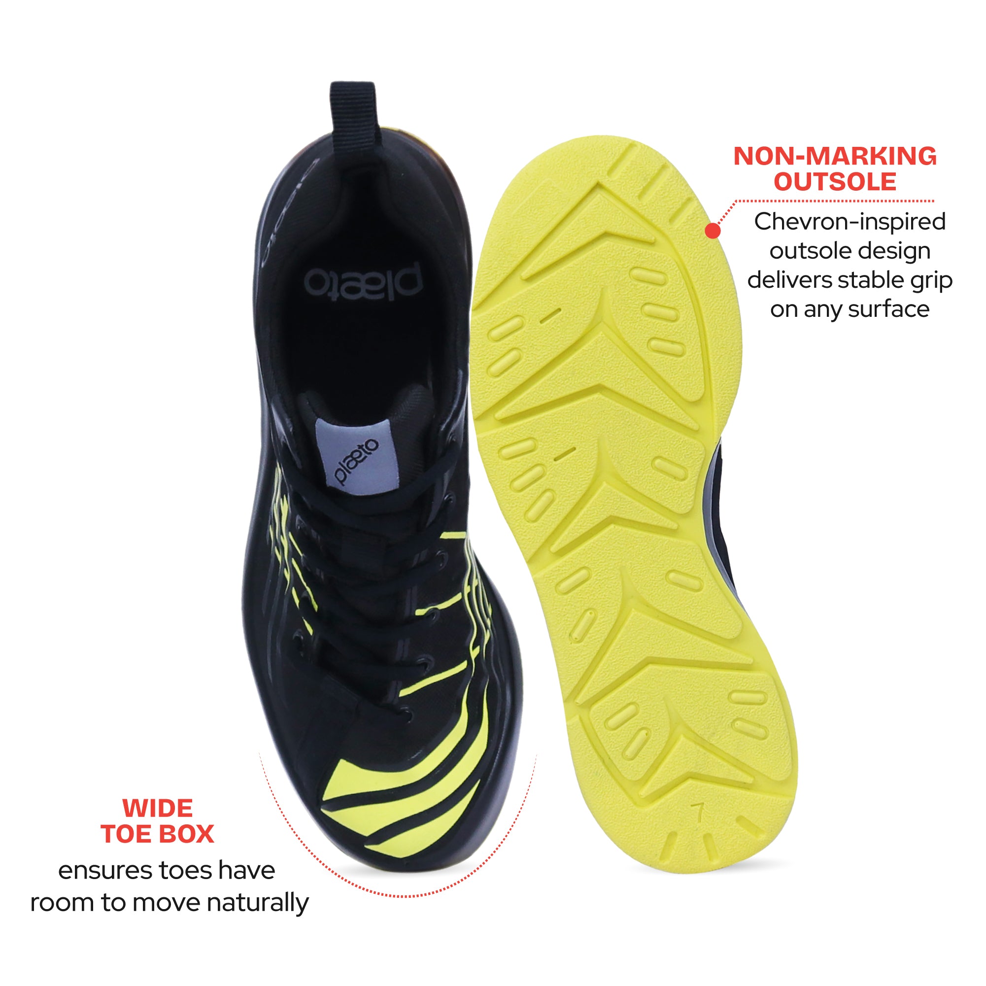 As Multiplay shoes, you can play tennis, badminton, run, gym, walk, or trek, on courts, tracks, fields, or playgrounds with Plaeto shoes. Best part is, thanks to the durability built into the product, even with all this play, there will hardly be any wear or tear.